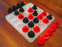 This ancient game is probably a direct ancestor of the better known Nine Men's Morris as well as Tic-Tac-Toe. It is played on a board of three rows and three columns. Players have three pieces each and take turns first placing then moving their piece